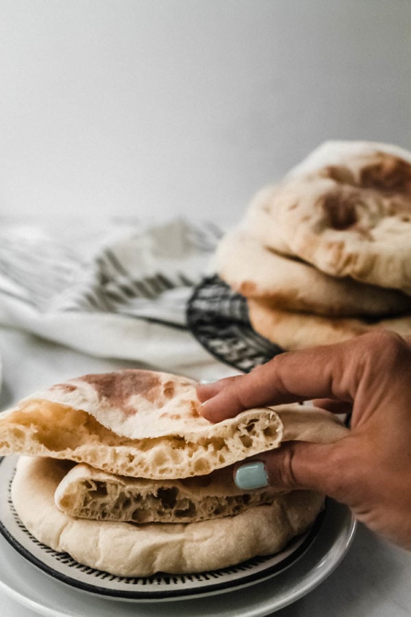 Soft, pillowy and fluffy, this Israeli-style homemade Pita Bread only requires 4 ingredients and is so satisfying to make with your family!